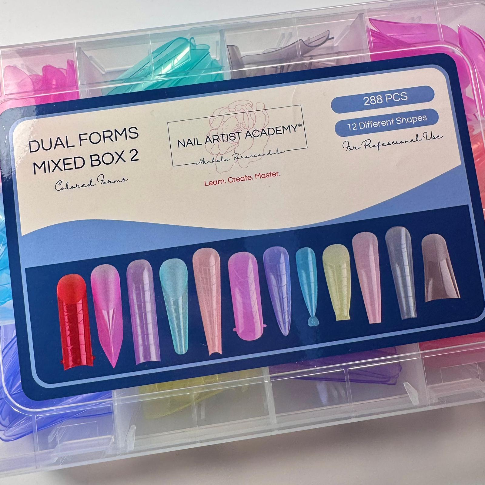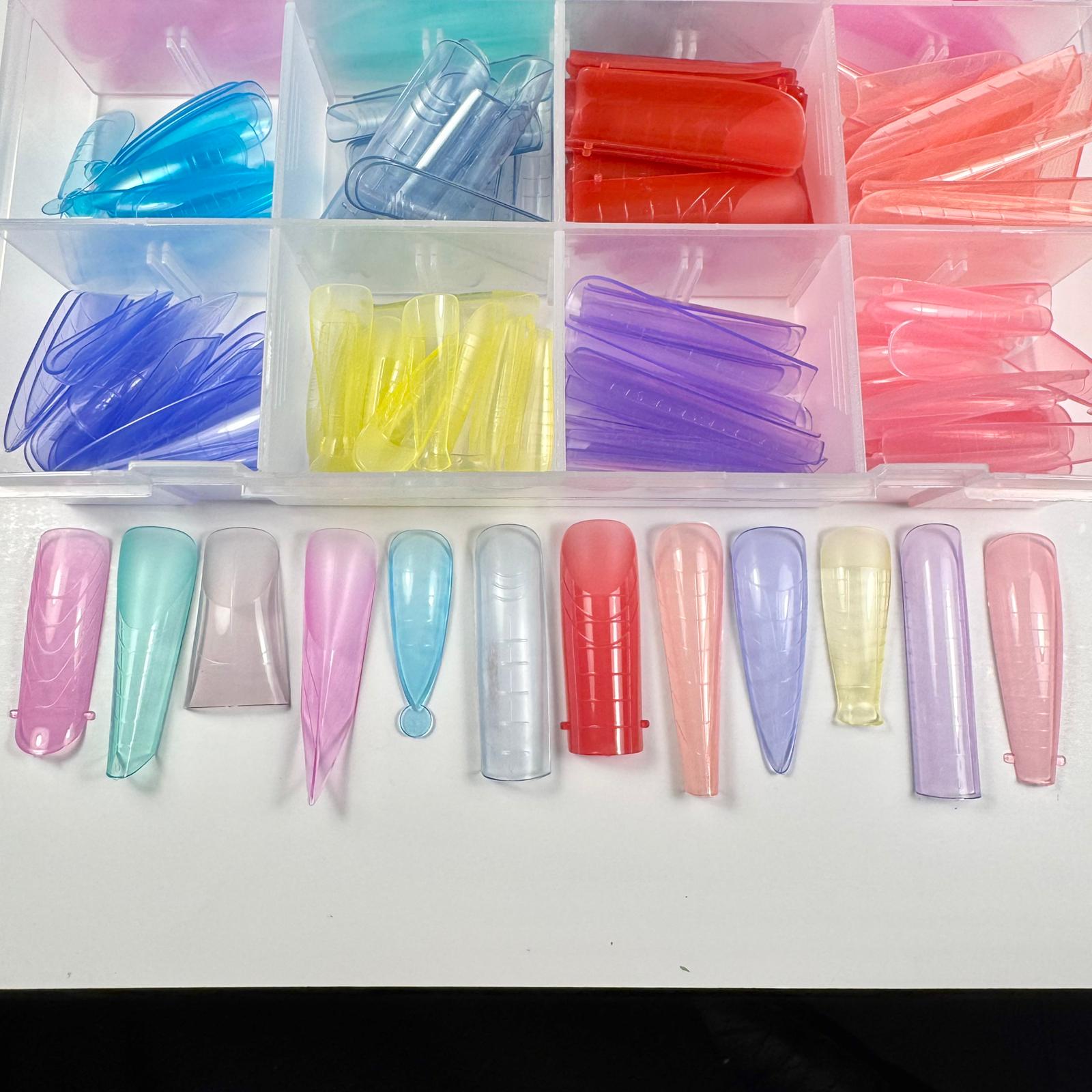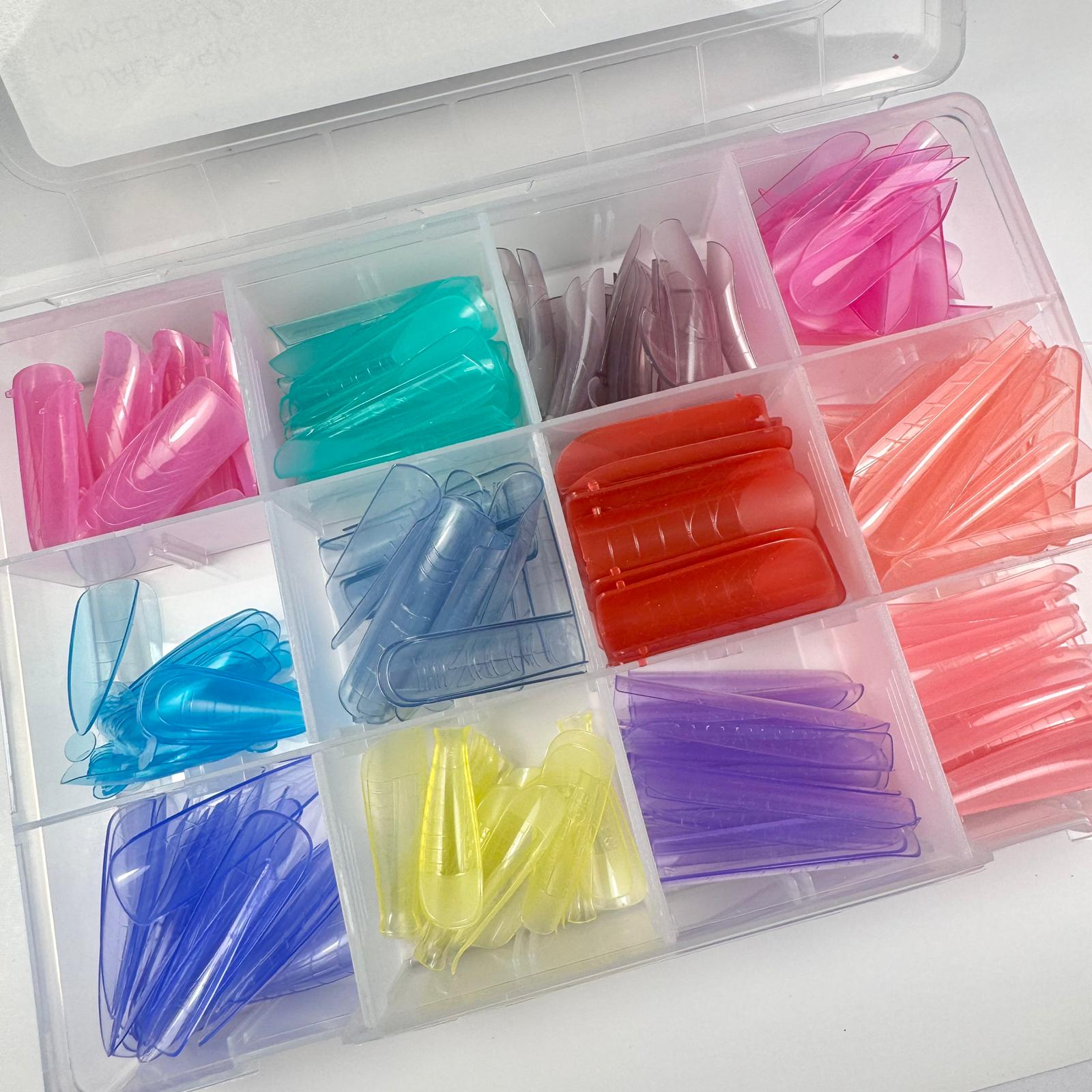 Confezione da 288 pezzi di Dual Forms in 12 forme colorate differenti con cui è possibile realizzare qualsiasi ricostruzione da salone.