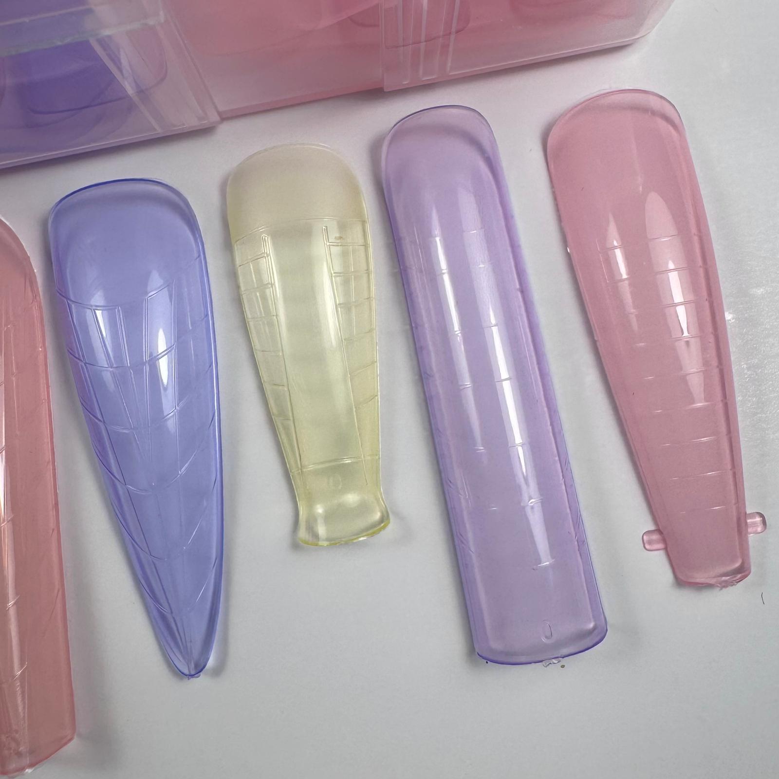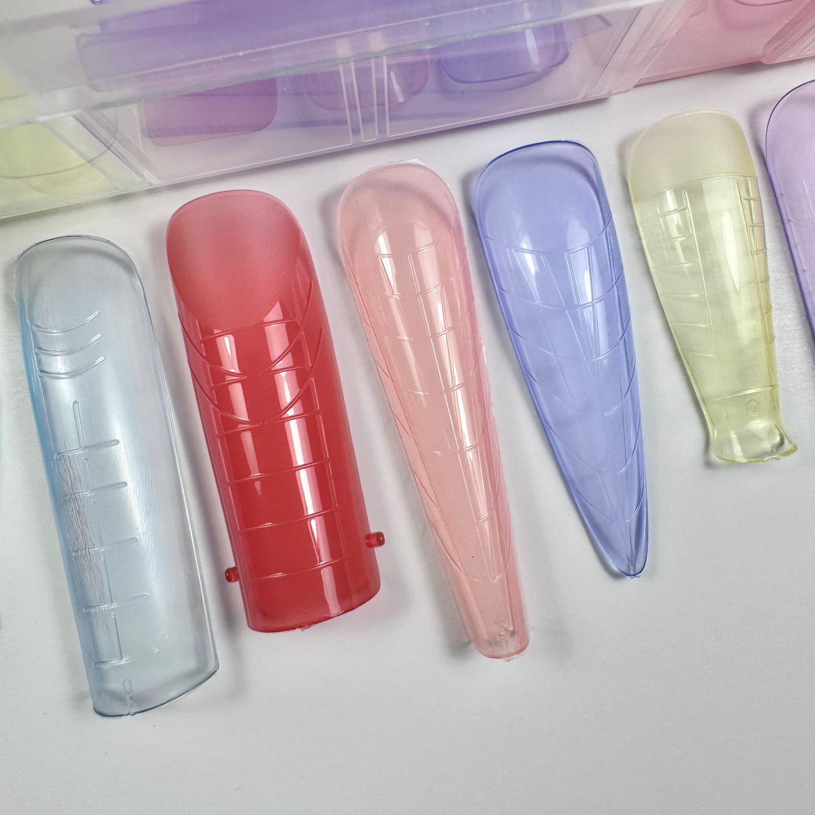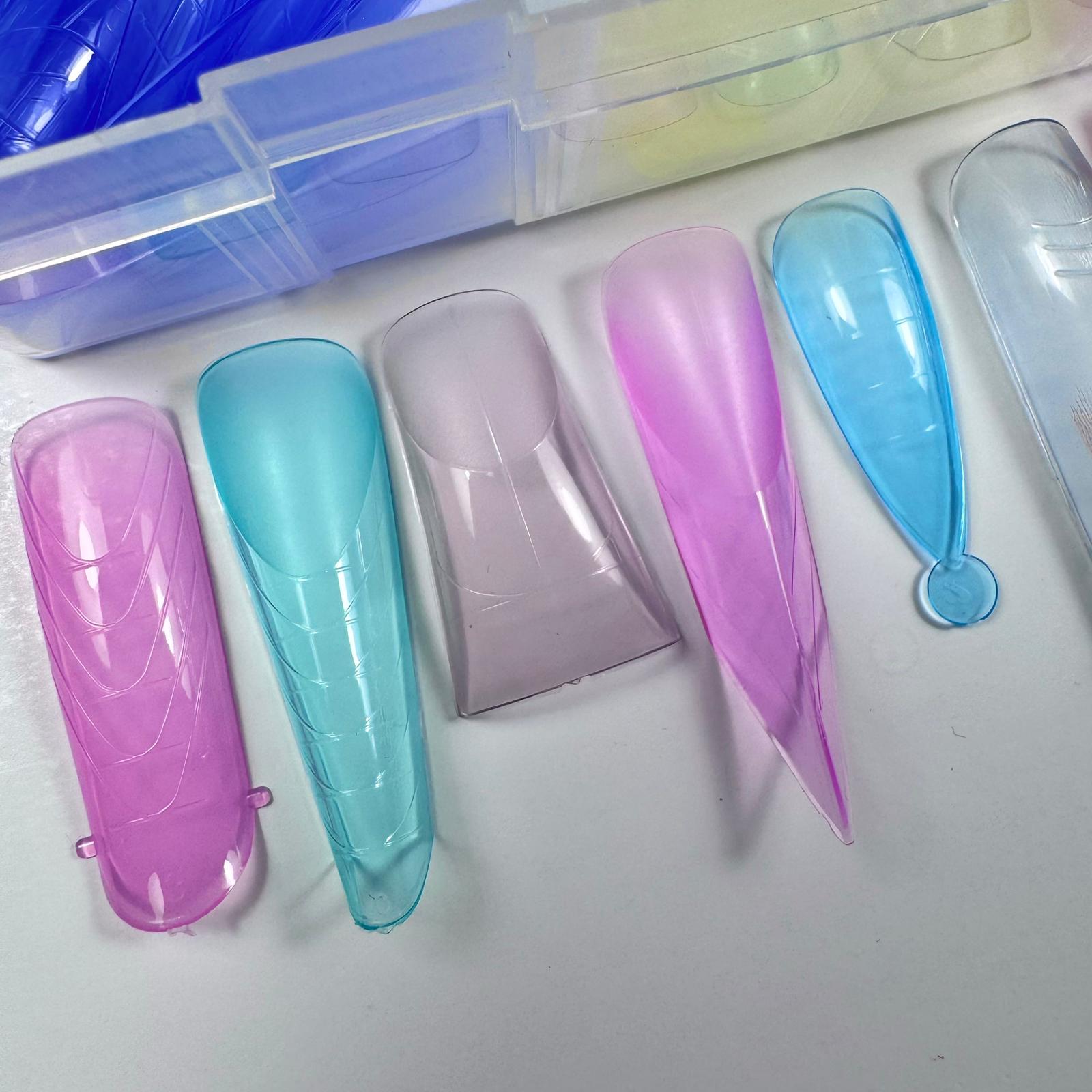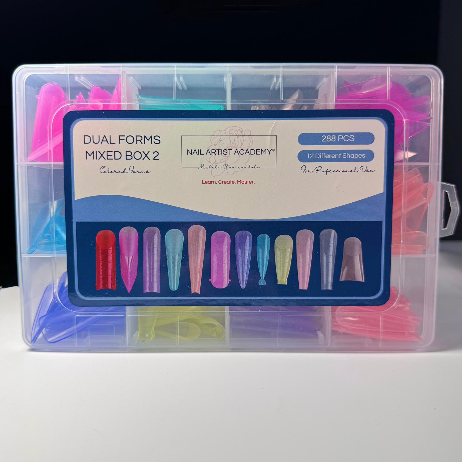 Confezione da 288 pezzi di Dual Forms in 12 forme colorate differenti con cui è possibile realizzare qualsiasi ricostruzione da salone.