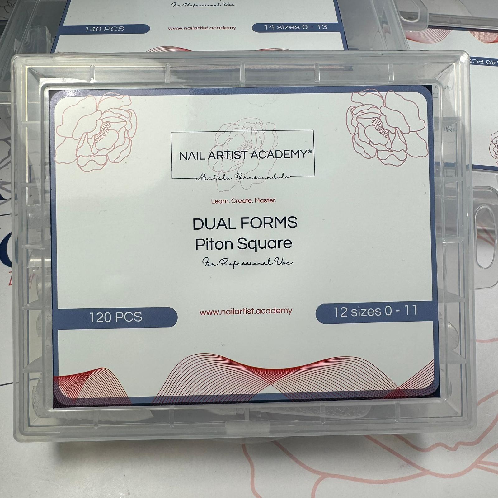 Confezione da 120 pezzi di Dual Forms forma quadrata da salone classica (circa 3,5cm di lunghezza) e con apice leggero in balance point.