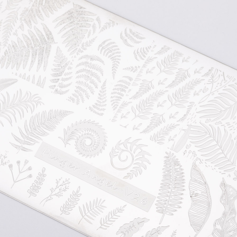 Piastra per la Tecnica dello Stamping a tema Foglie e Felci per realizzare Nail Art stupende e dettagliate in pochi minuti.