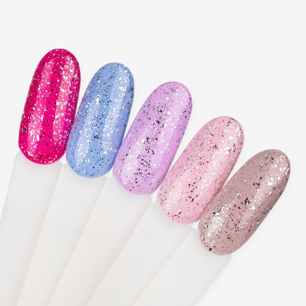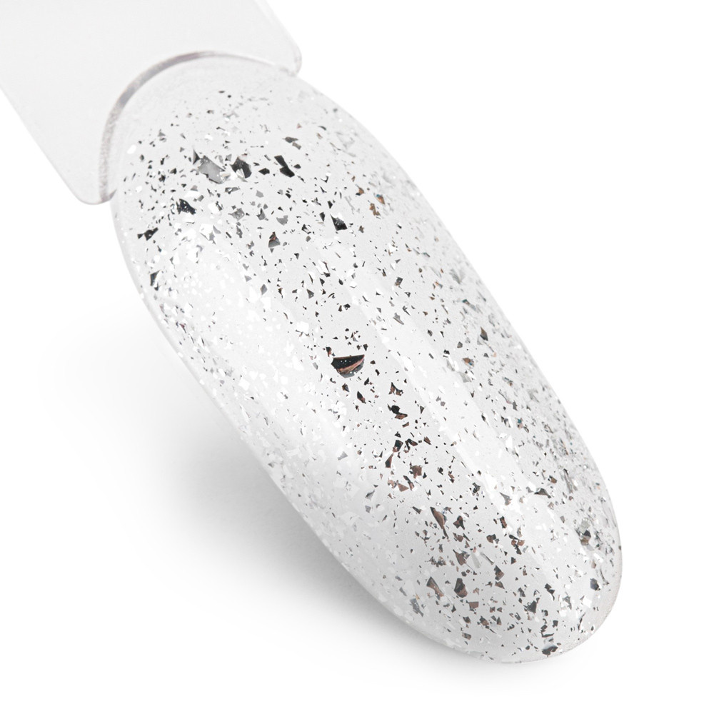 Top Drop Flakes Silver è un Sigillante Lucido con Flakes Argentati, flessibile e senza dispersione. Polimerizza in lampada UV&LED in 30 sec.