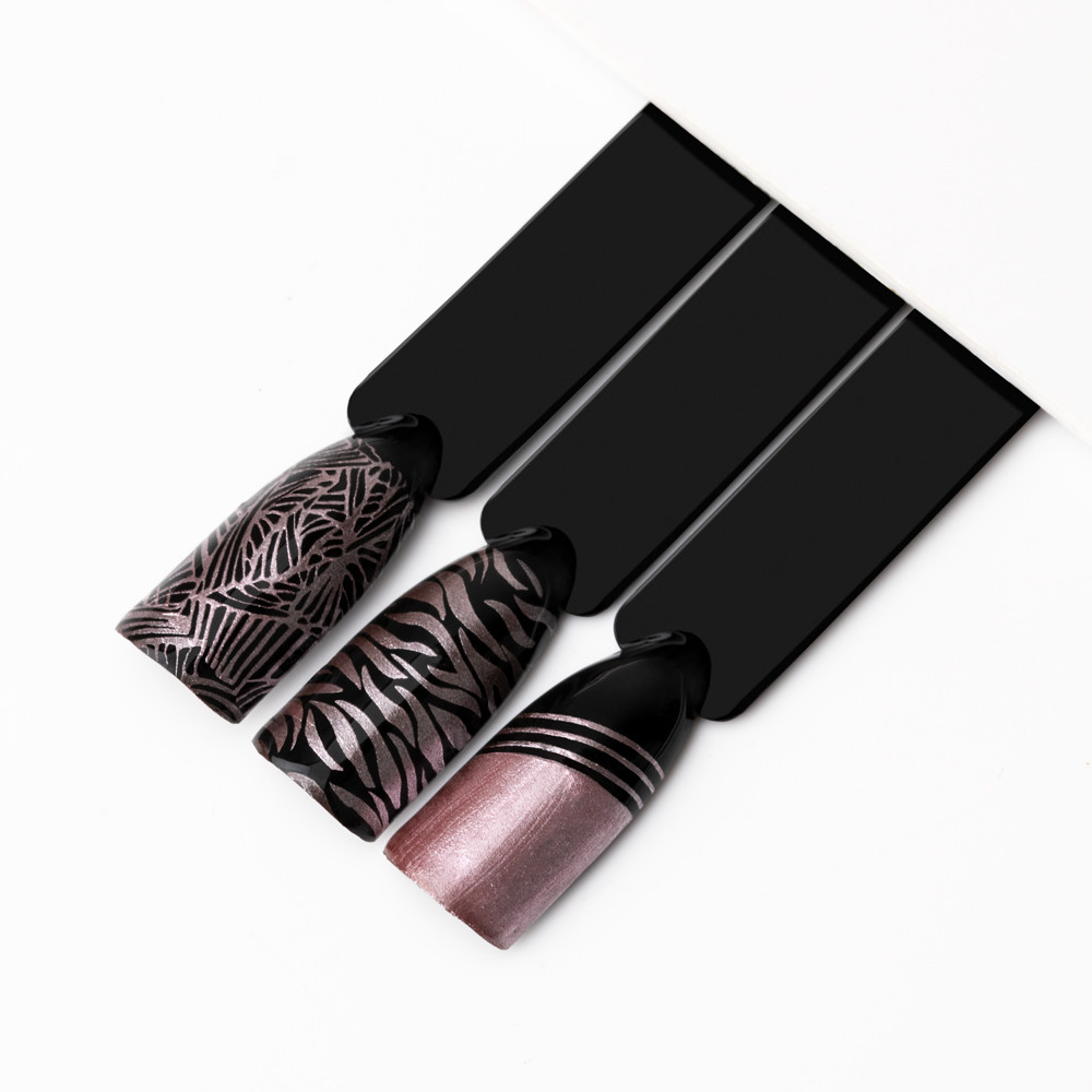 Smalto Classico Rosa Chiaro Metallizzato creato appositamente per la Tecnica dello Stamping, polimerizza all’aria ed è altamente pigmentato, permettendoti di realizzare effetti di stamping spettacolari.
