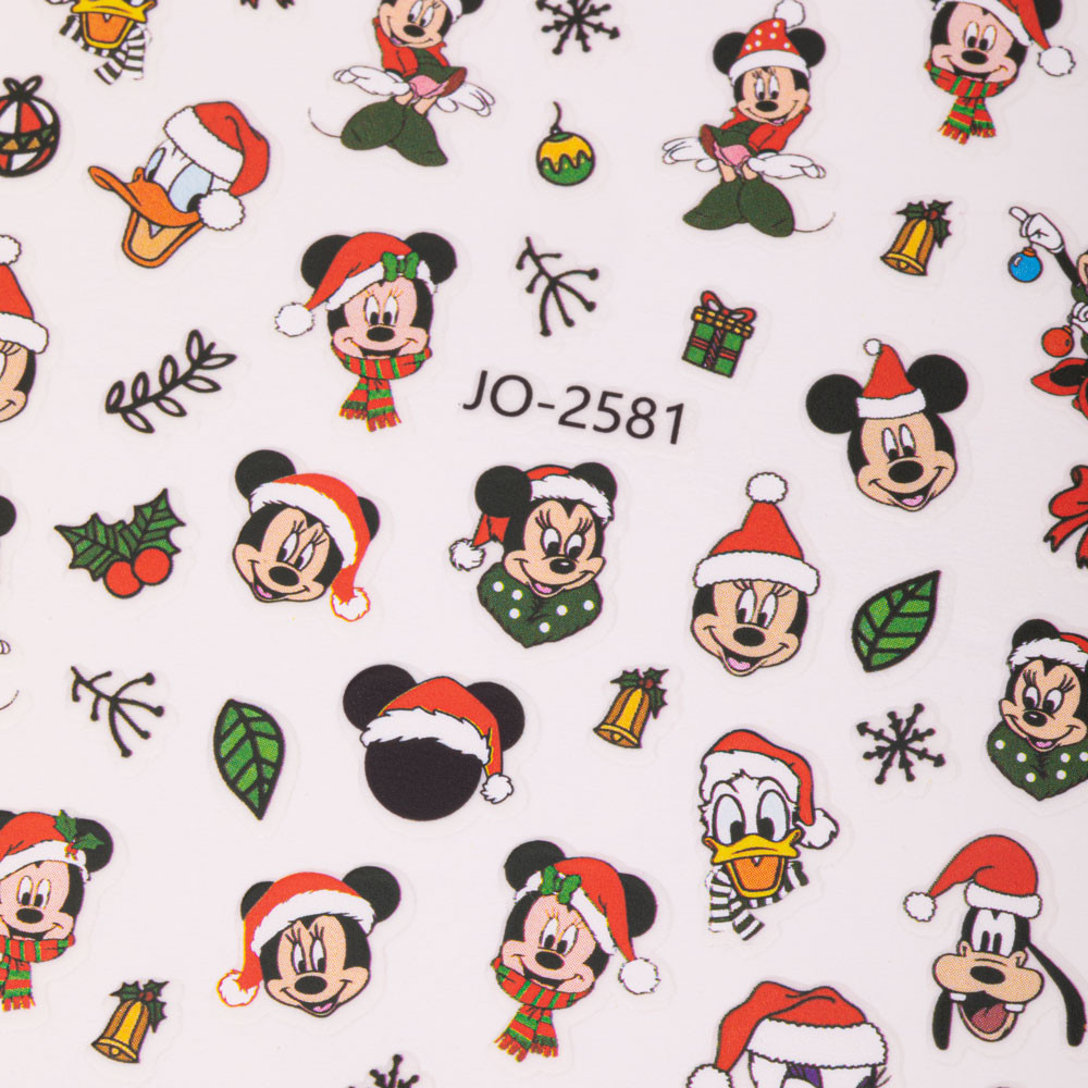 Stickers natalizi per unghie a tema Disney, siliconici, piatti. Includono i principali personaggi di Mickey Mouse ed elementi natalizi minimal.