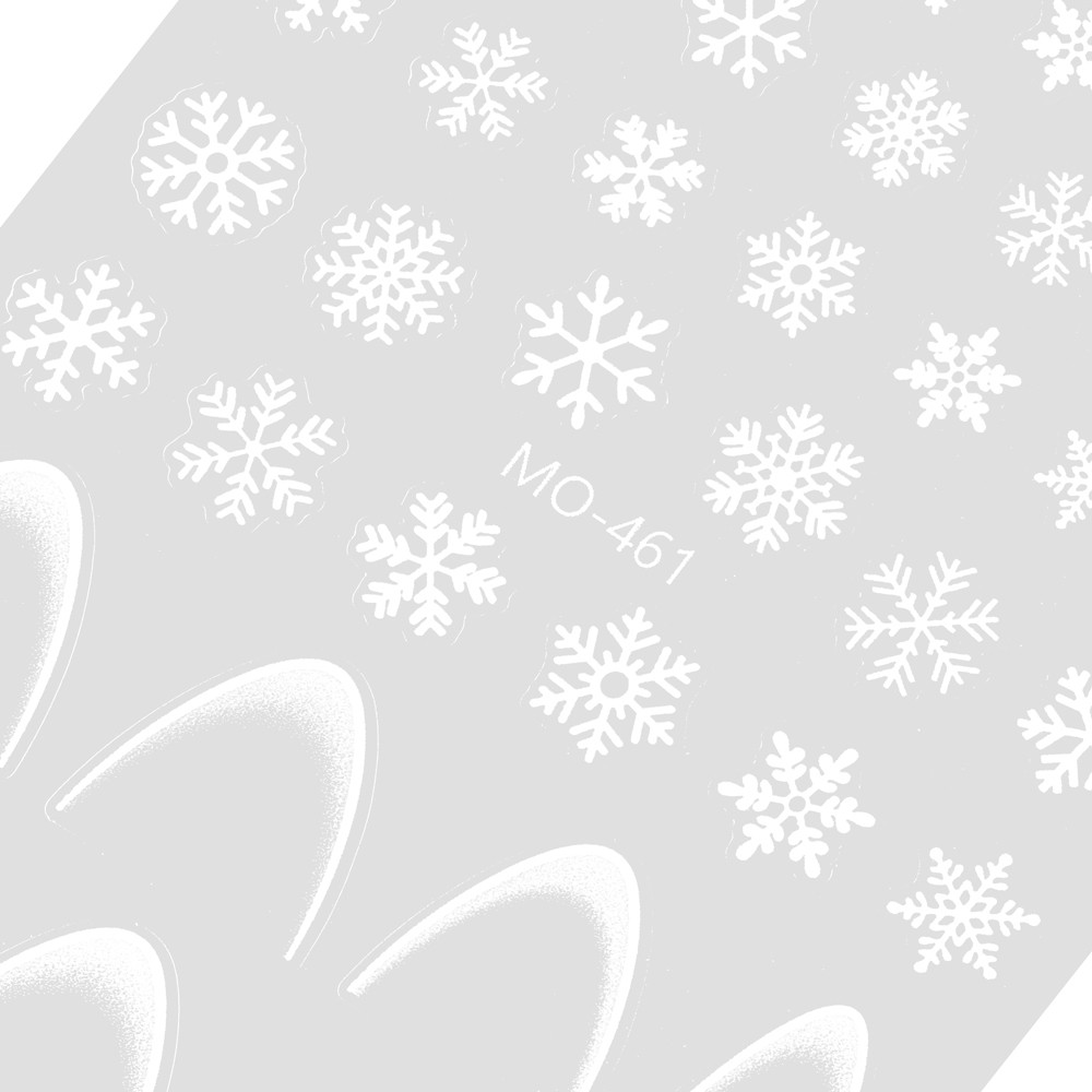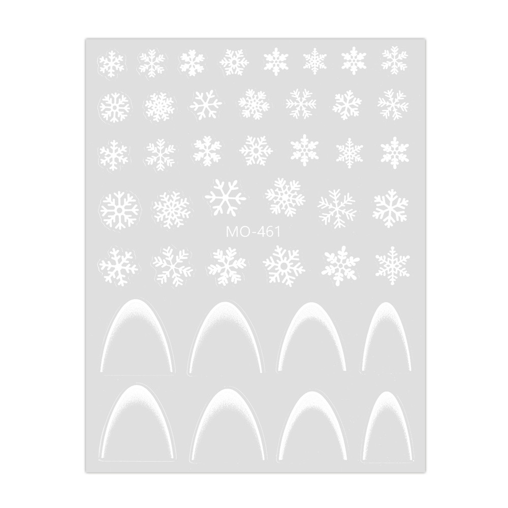 Stickers con Smile Line Bianca sfumata per French Manicure e fiocchi di neve di varie forme e dimensioni.